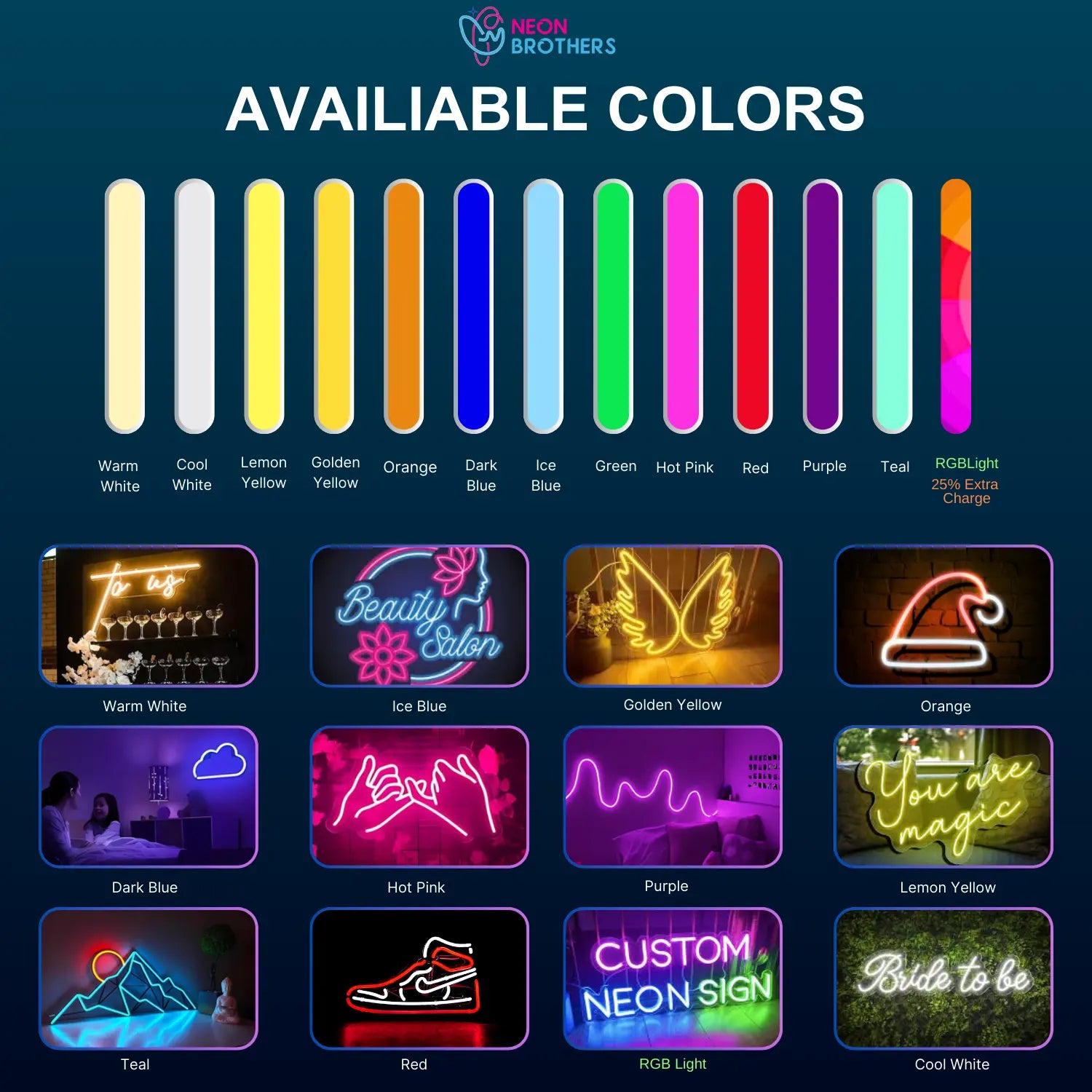 This eco-friendly LED neon strip is designed for long-term use. Mounted on a see-through acrylic board, this sign links up to a standard power cable. A tough power bank with a plug keeps it going strong for years.